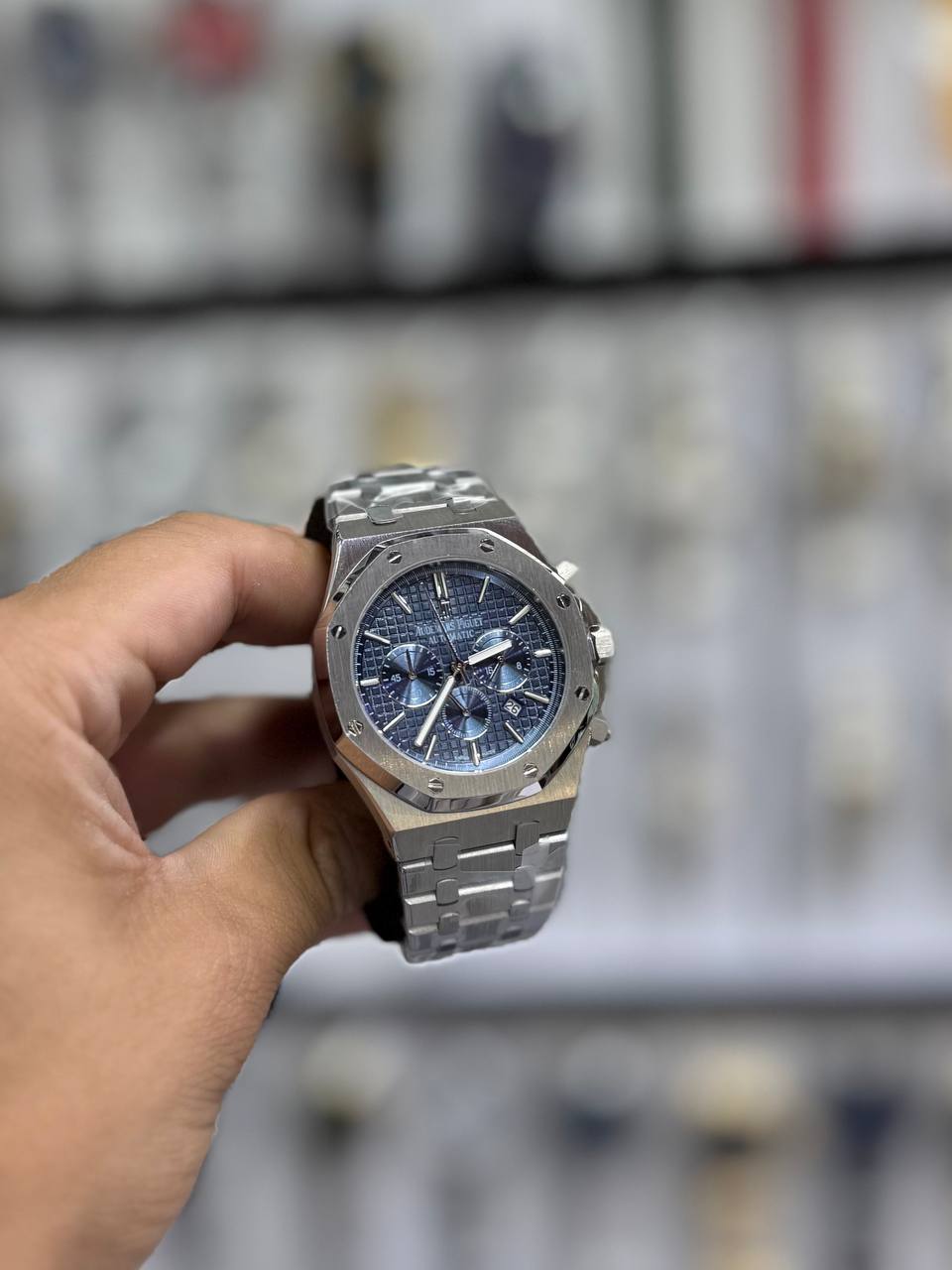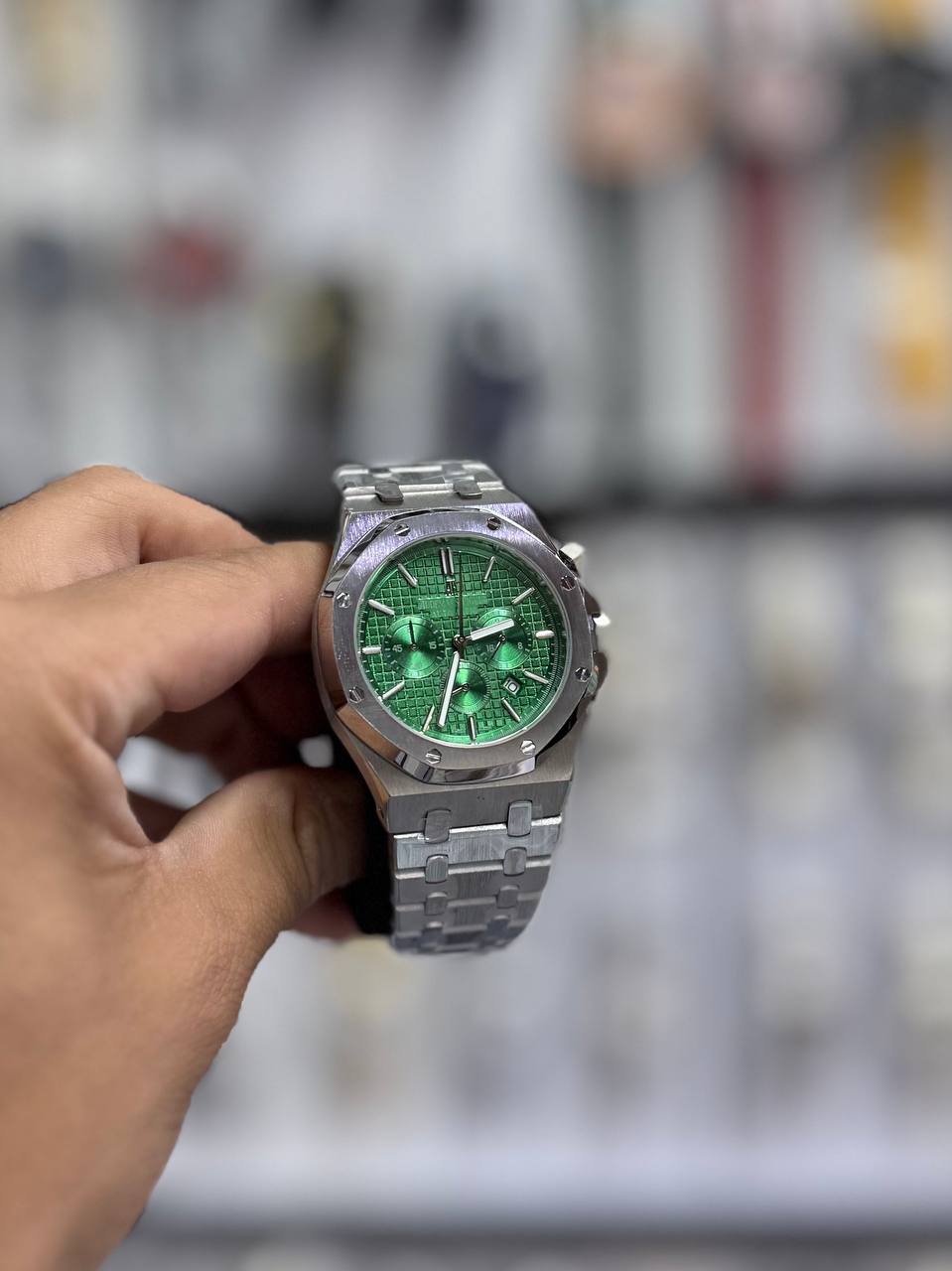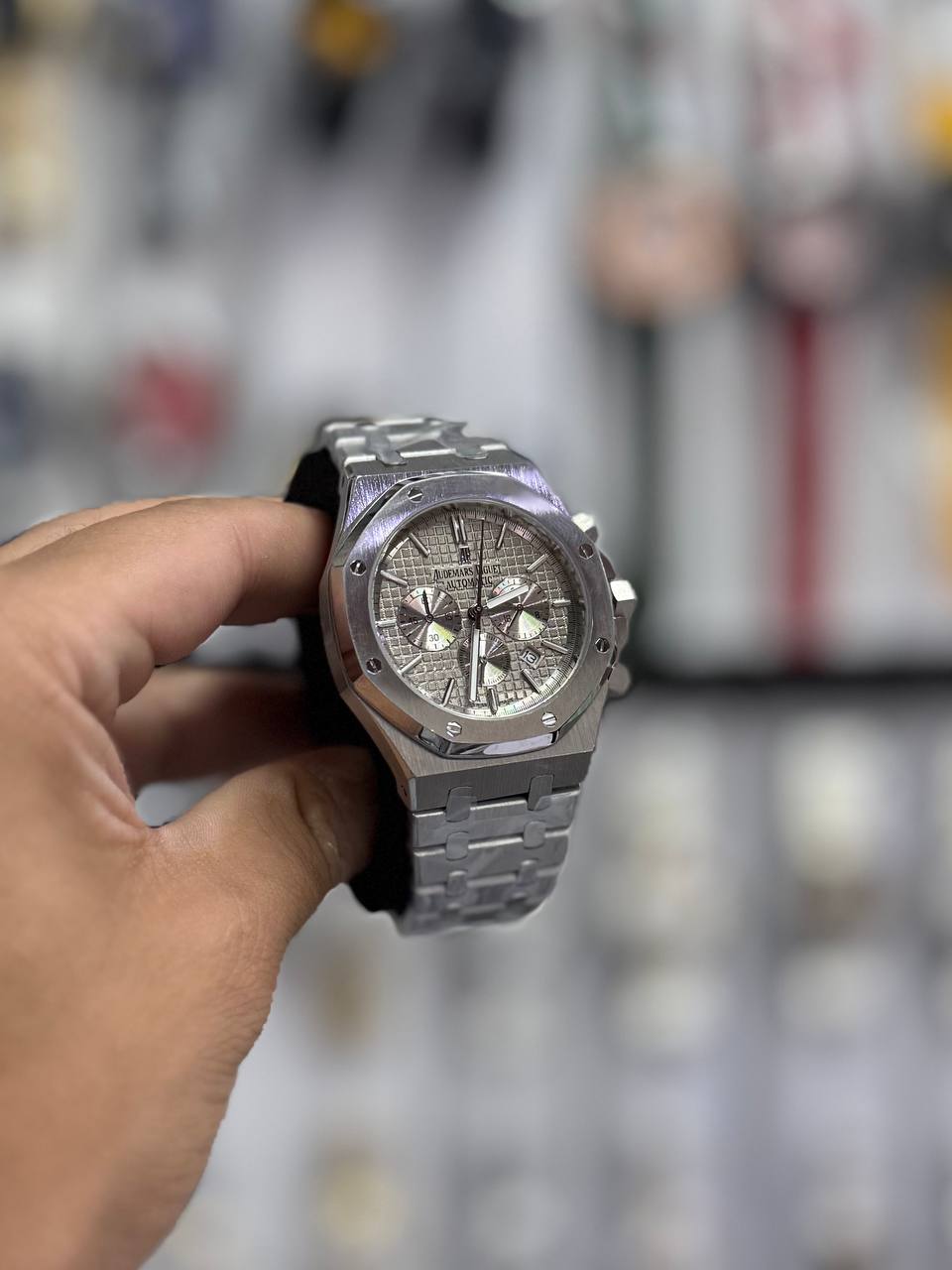 بهترین کیفیت موجود (Replica) سه موتوره و کرنوگراف نمایش تاریخ و شب و روز ضد آب تا 80 درصد عقربه شب نما بدنه و بند از استیل شیشه معدنی ضد خش اندازه قاب: 41.7 میلیمتر ضخامت قاب: 11.4 میلیمتر وزن: 173 گرم موتور ساخت ژاپن جعبه و متعلقات مارکدار : 1
