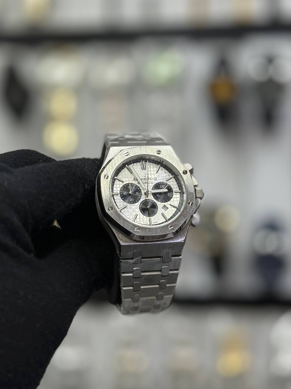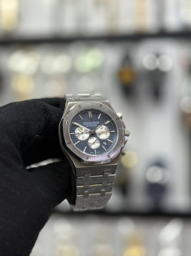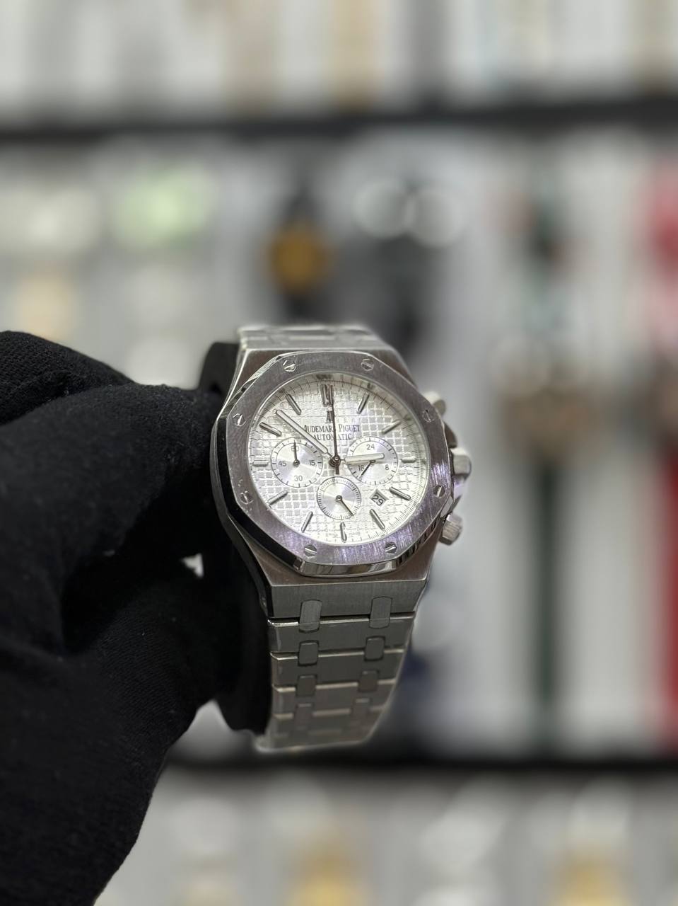 بهترین کیفیت موجود (Replica) سه موتوره و کرنوگراف نمایش تاریخ و شب و روز ضد آب تا 80 درصد عقربه شب نما بدنه و بند از استیل شیشه معدنی ضد خش اندازه قاب: 41.7 میلیمتر ضخامت قاب: 11.4 میلیمتر وزن: 173 گرم موتور ساخت ژاپن جعبه و متعلقات مارکدار : 1